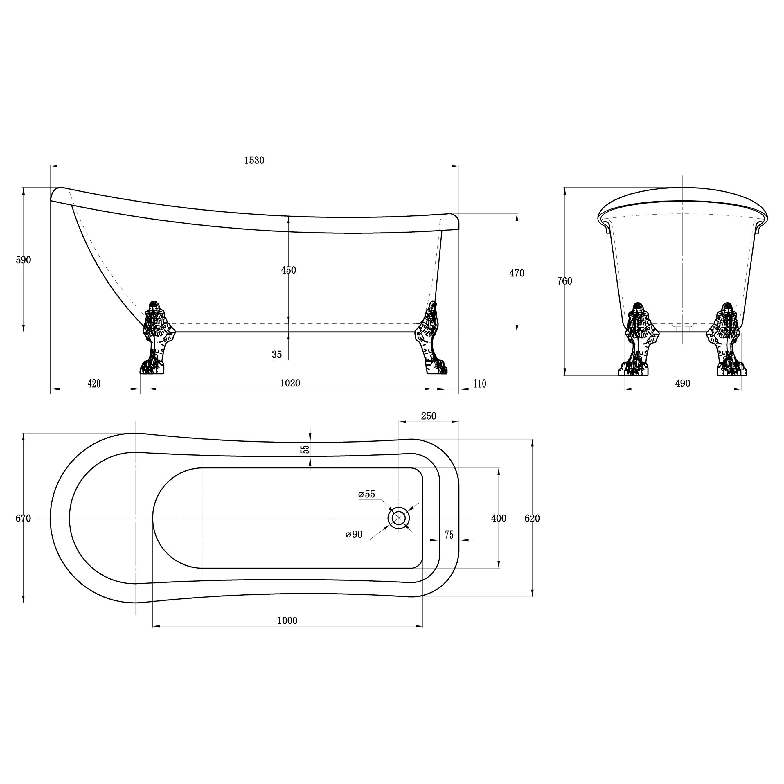 Bathlife Ideal badekar med løveføtter er et klassisk, frittstående badekar som er laget av dobbeltlags sanitetsakryl forsterket med glassfiber for ekstra stabilitet. Det leveres med elegante løveføtter, avløpsslange og forkrommet bunnventil. Løveføttene er justerbare slik at badekaret kan plasseres vertikalt. Kjøp til badekarbatteri.