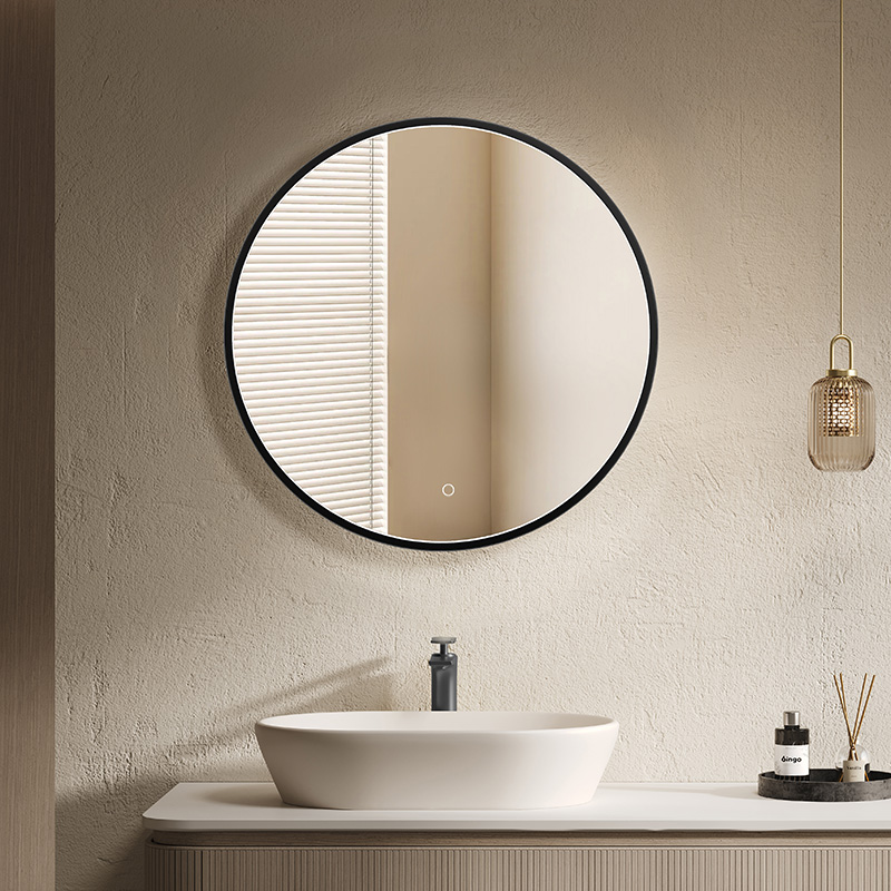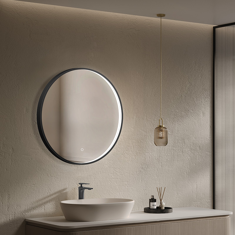 Speil Bathlife Lysa Rund er et elegant rundt speil med svart ramme og belysning på innsiden av rammen som gir lys mot ansiktet. Med berøringsfunksjonen på speilet kan du enkelt justere lystemperaturen fra varm til kald etter funksjon og behov.
